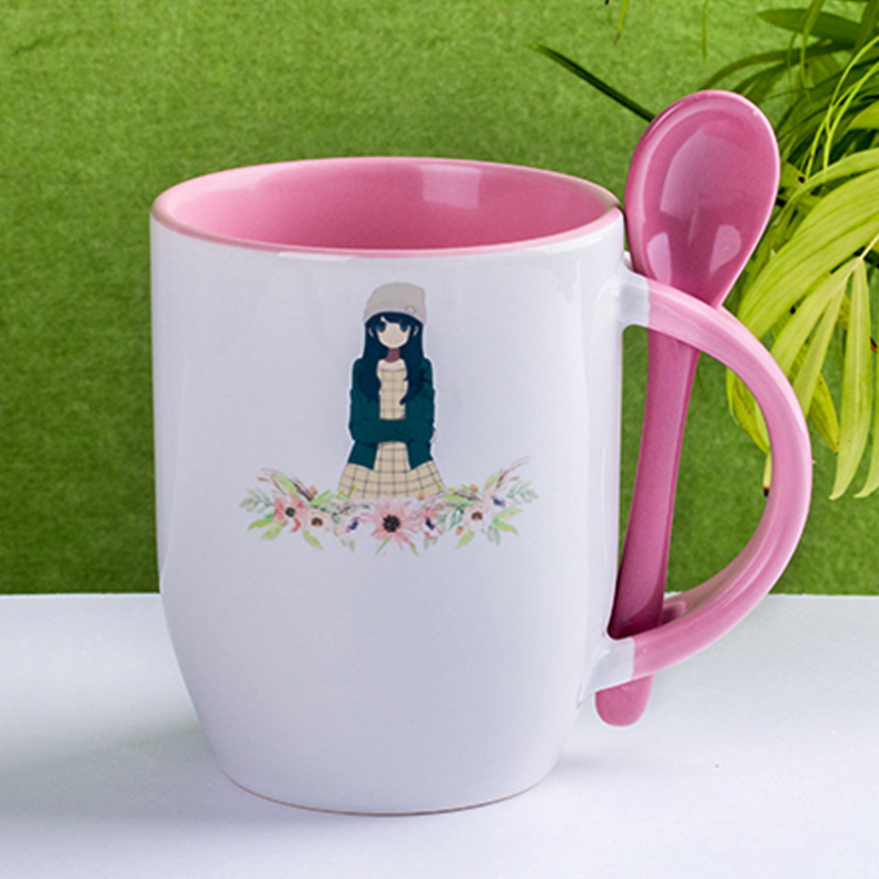 广告马克杯定制logo印字照片陶瓷插勺彩杯定做节日礼品免费印