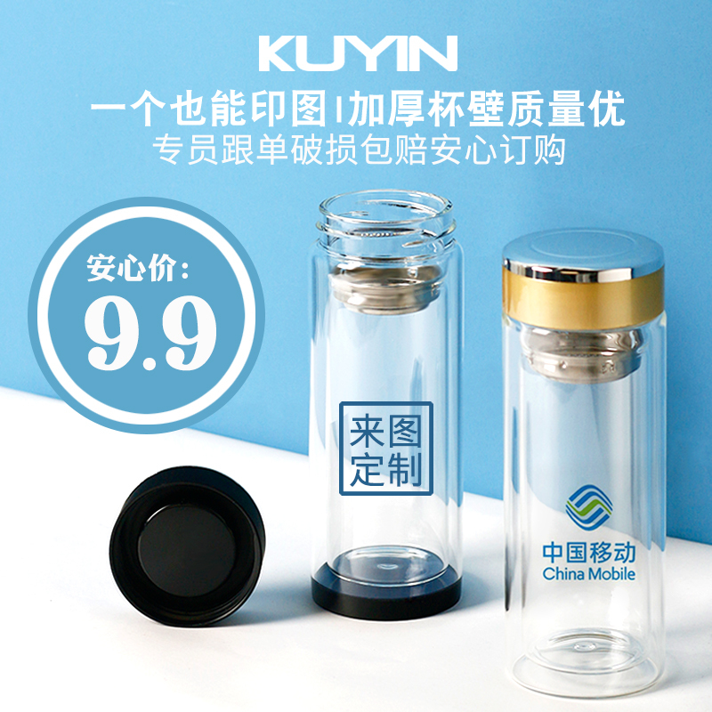kuyin双层玻璃杯定制广告杯订制定做男女士便携防烫过滤网泡茶杯