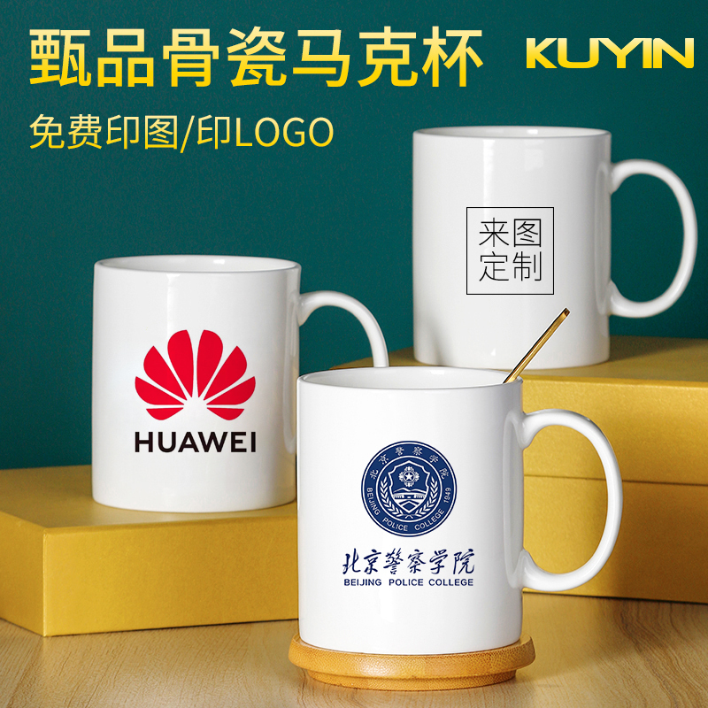 kuyin甄品骨瓷马克杯定制印logo礼品宣传杯子