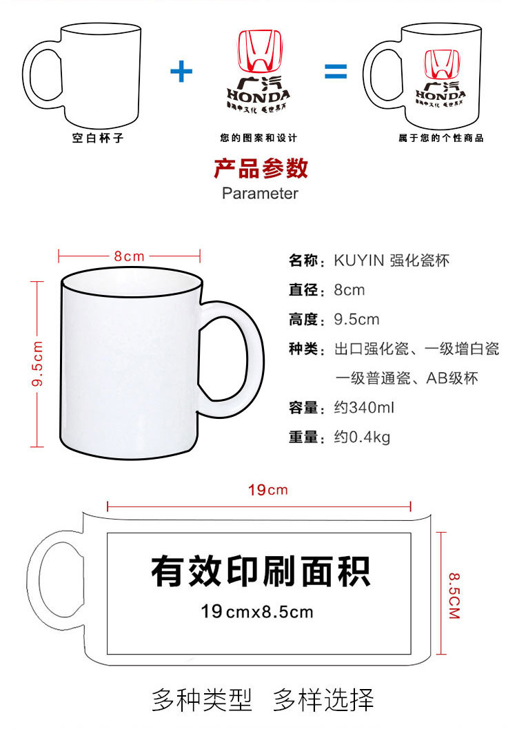 kuyin甄品骨瓷马克杯定制印logo礼品宣传杯子