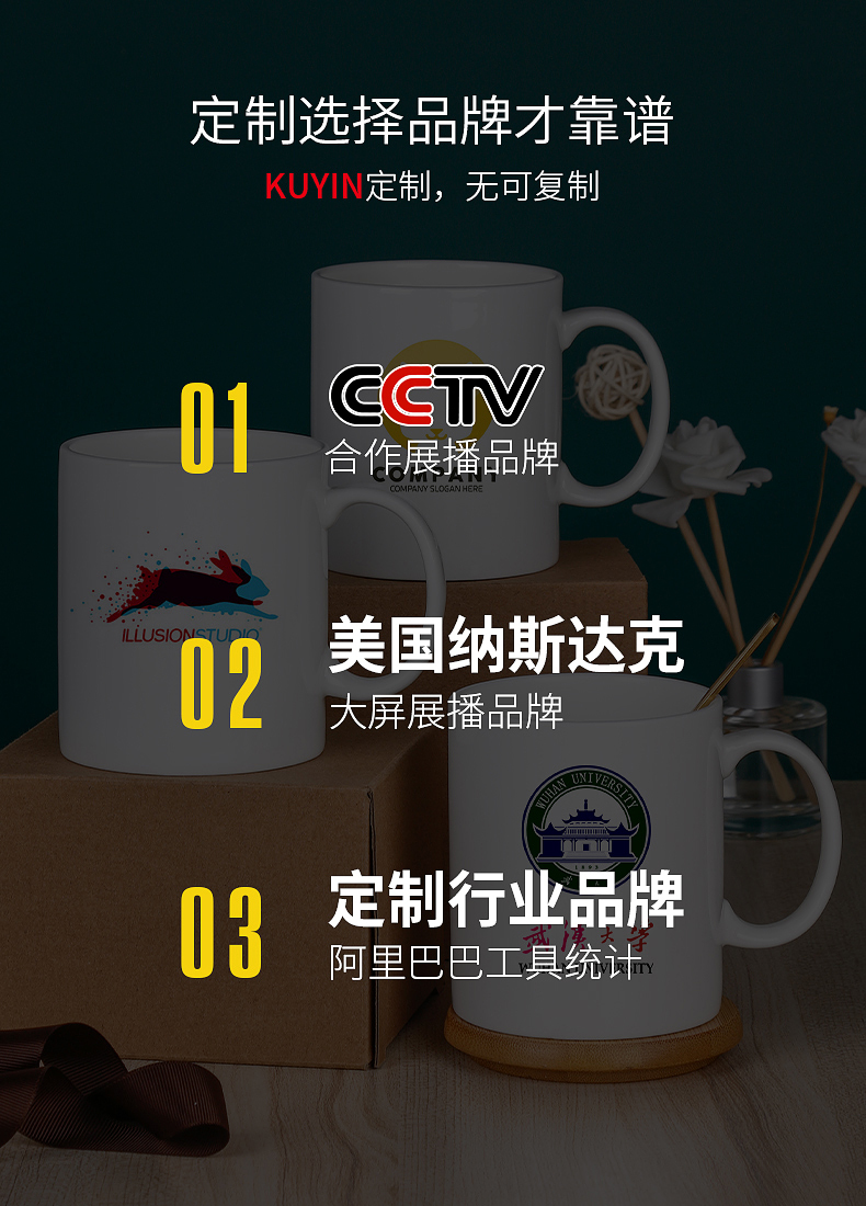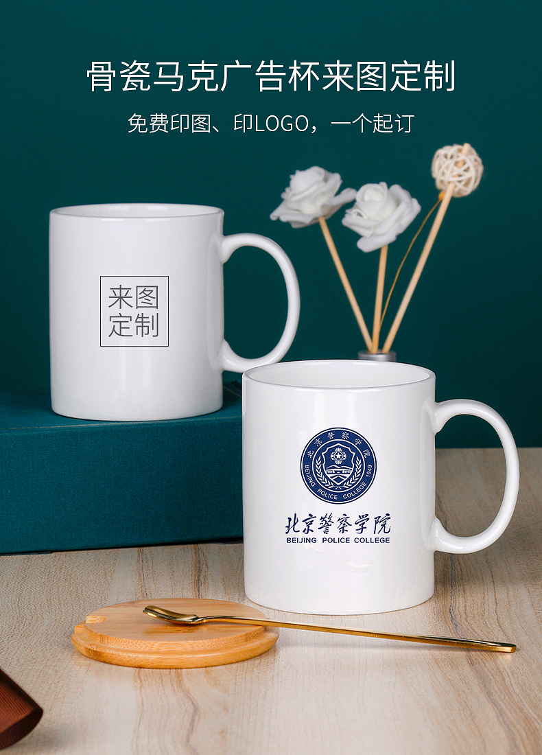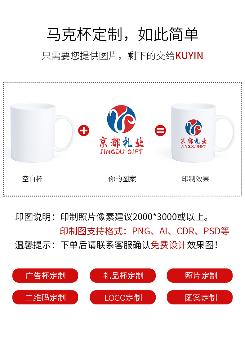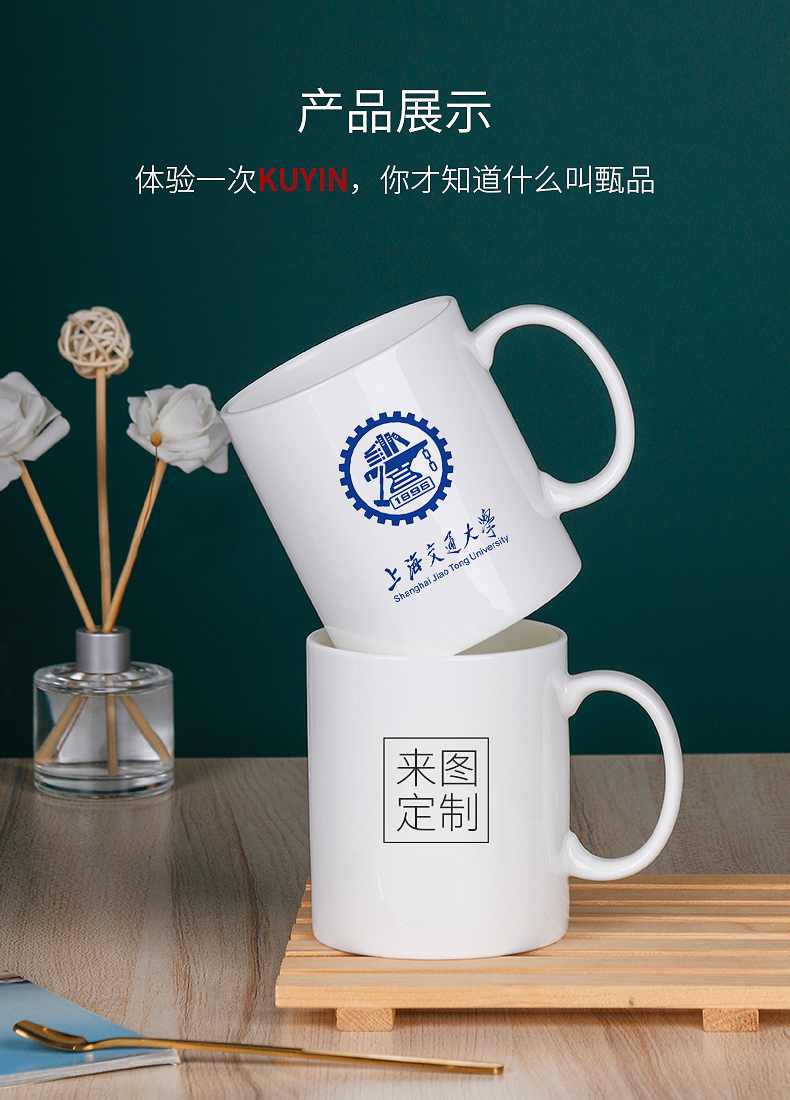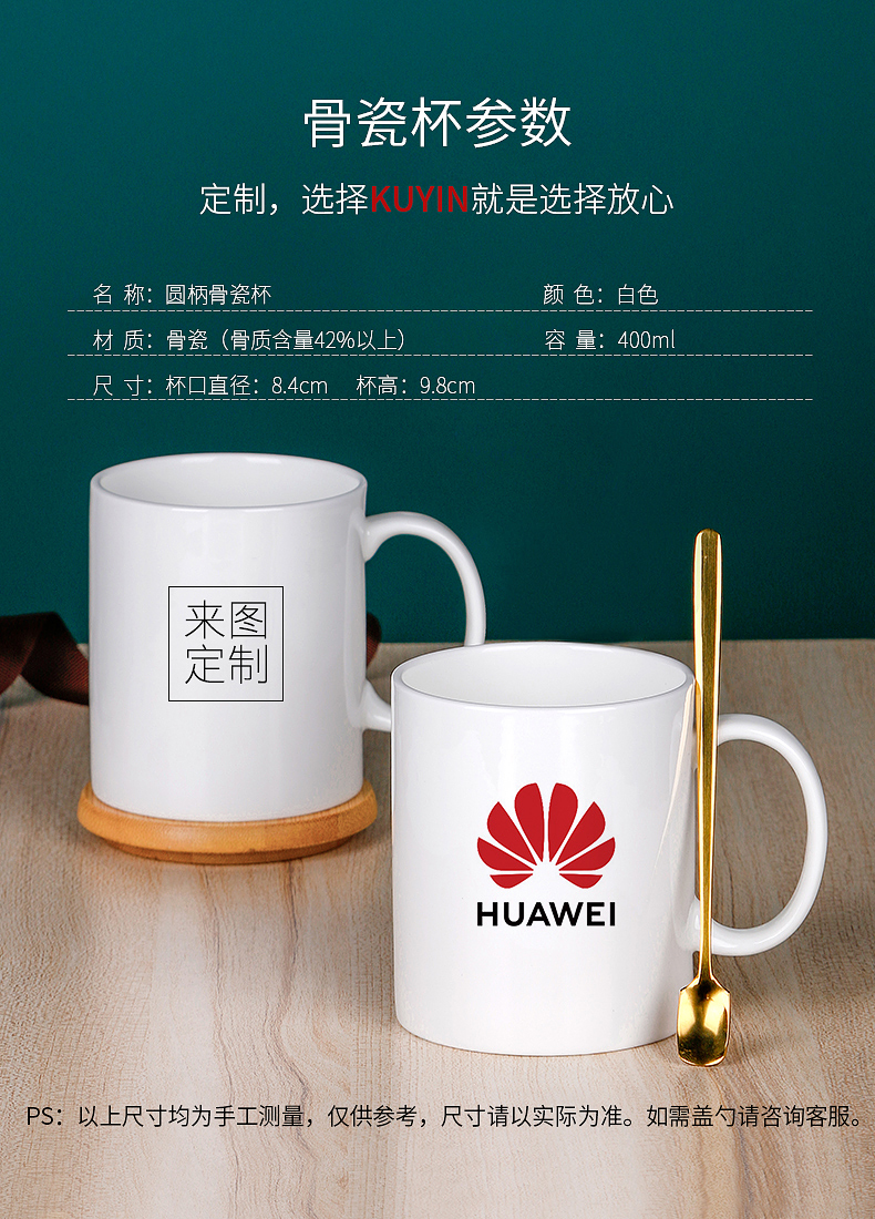 kuyin甄品骨瓷马克杯定制印logo礼品宣传杯子