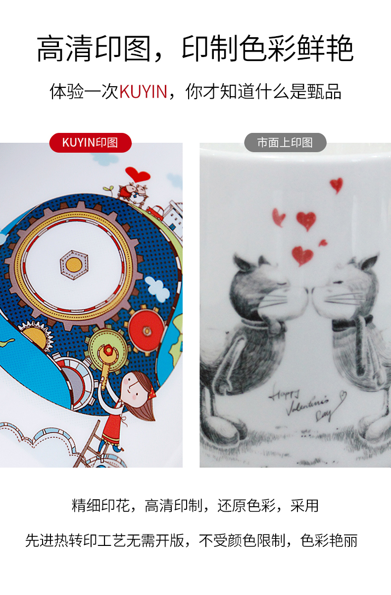kuyin甄品马克杯定制带盖勺情侣咖啡杯水杯定做杯子可印图logo