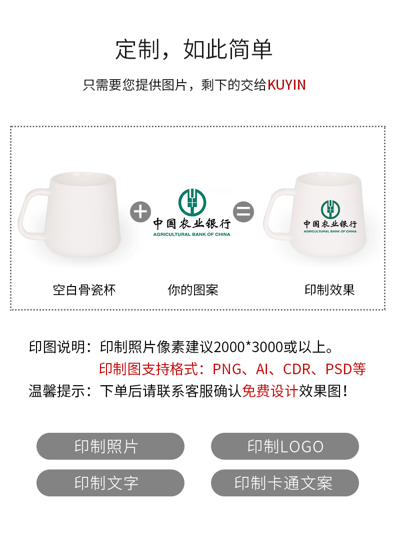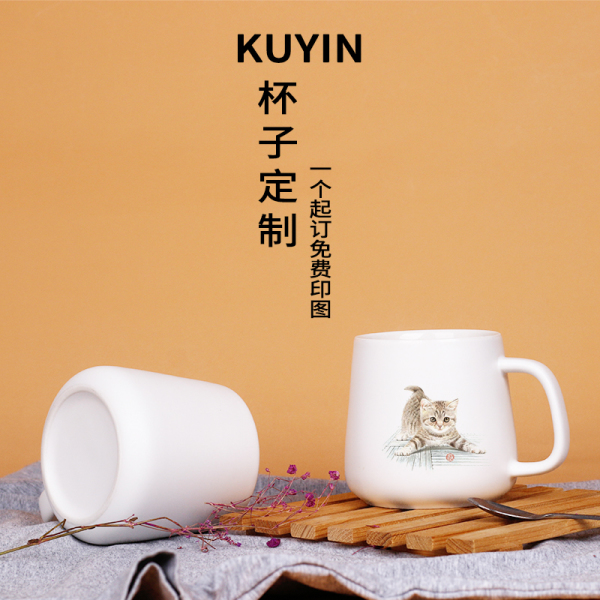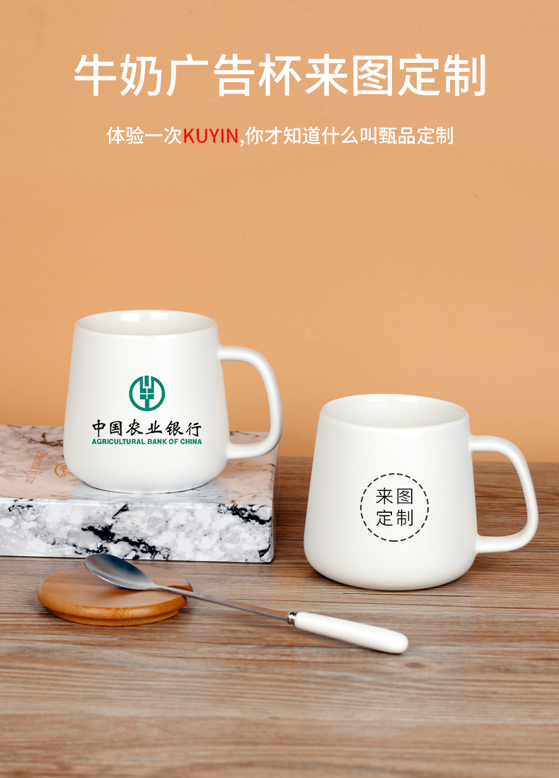 kuyin甄品骨瓷马克杯定制印logo礼品宣传杯子